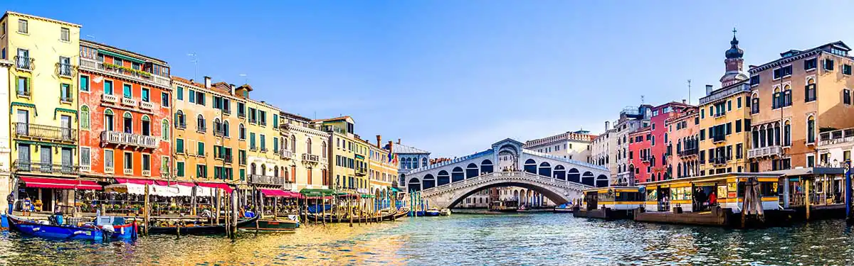 Venetië is een prachtige stad in Italië, bestaande uit meer dan 100 kleinere eilandjes. Een deel van de eilanden ligt dichter bij elkaar en wordt verbonden door de vele kanalen. Andere eilanden liggen verder uit elkaar. Venetië bezoeken per boot is vanwege al het water echter wel de gangbare manier om u te verplaatsen naar de Venetië bezienswaardigheden.